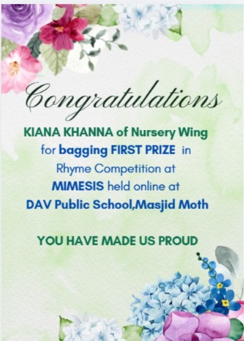 Declamation competition was held at Arya Samaj Mandir Marg. It is heartening to share that 2nd prize is bagged by Radhika Narula, 11J. Topic *Samajik kuritiyan mitane Mein Arya Samaj ka yogdan*