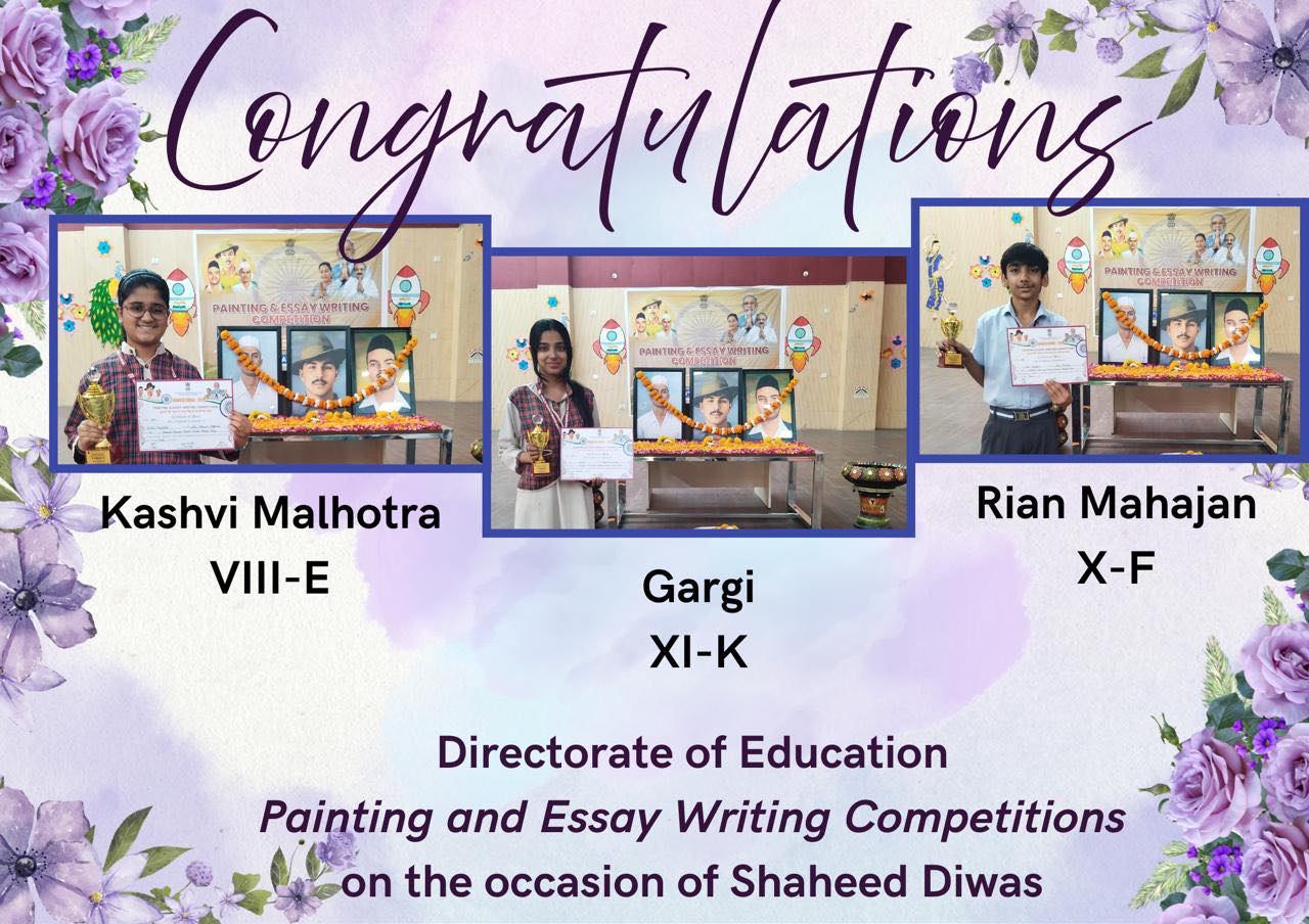 Participants : Aashima Soota XI-E, Gopal Singhal XI-F, Gauri Kapoor XI-E, Saksham Gupta XI-E, Pritha Budhiraja XI-E, Lakshay Bhatia XI-E, Idhika Minoch XI-E, Somya Bansal XI-F, Aman Jain, XII-E, Aparna Gupta XII-F